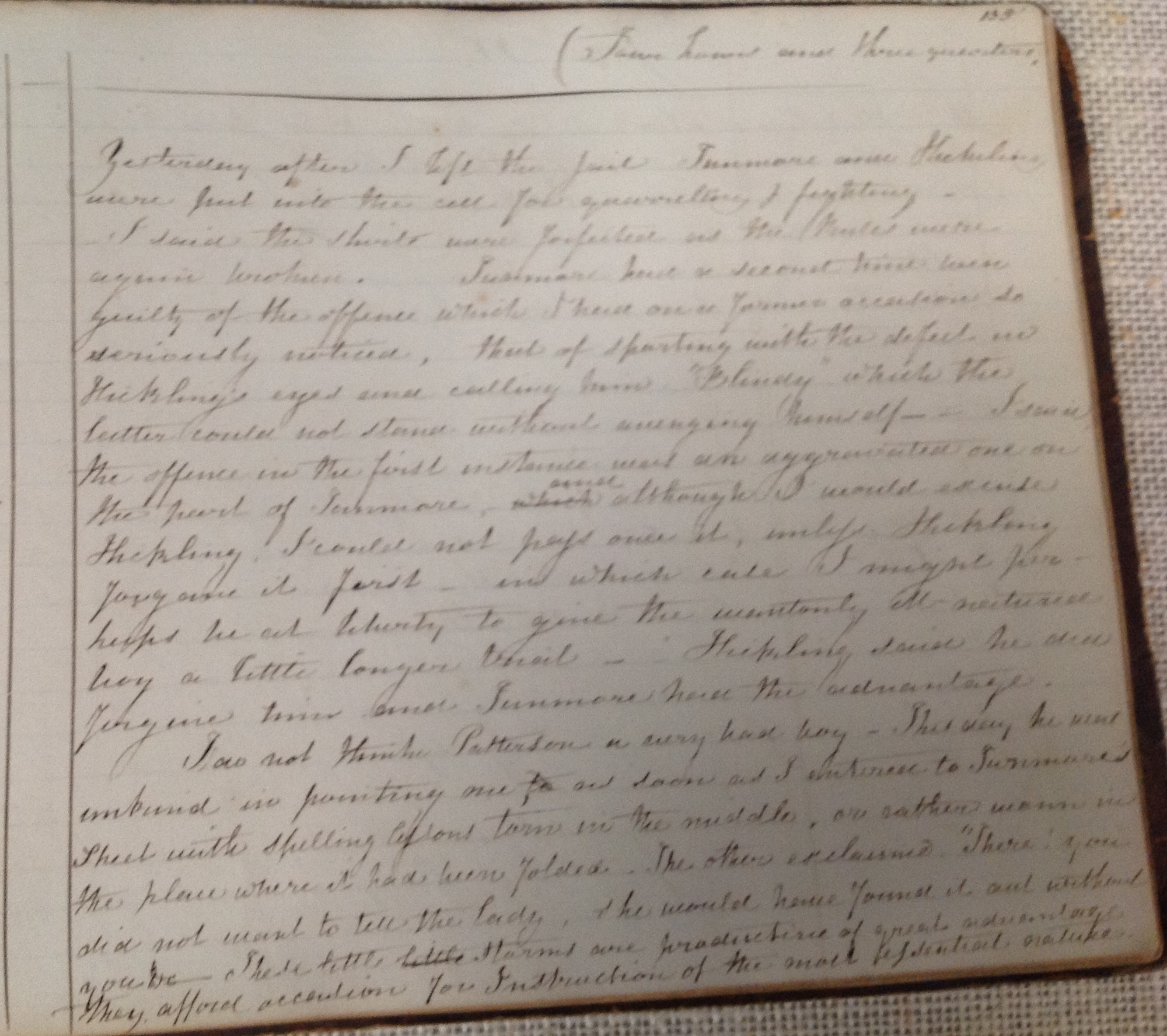 ‘I do not think Patterson a very bad boy’, the teacher observes later about Christmas Patterson. ‘This day’, she writes, ‘he was unkind in pointing me, as soon as I entered to Tunmore’s sheet with spelling lessons torn in the middle, or rather worn in the place where it had been folded. The other exclaimed. “There you did not want to tell the Lady, she would have found it out without you”.’ She mulls over the day’s exchanges but still allows herself to hope. ‘These little storms are productive of great advantage’, she assures herself, for ‘they afford occasions for Instruction of the most essential values.’[14] Little storms, little boys, her little boys.